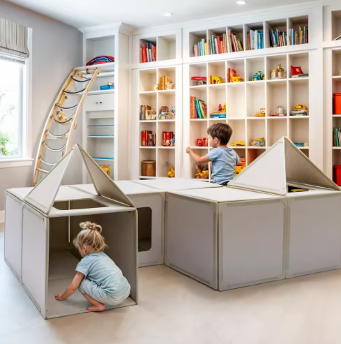 • 2 carrés avec fenêtres : parfaits pour créer des espaces interactifs.
